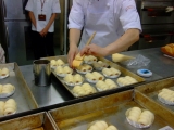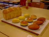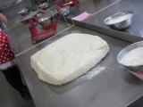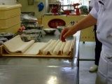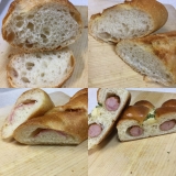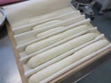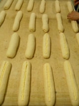 フランスパンの他にはバターフランス、チーズベーコン、ダブルウィンナーロールを作りました<チーズベーコン>チーズとベーコンを生地にのせ、切れ目を入れて巻きますベーコンが硬いので巻きにくい <バターフランス>バゲット生地に切れ目を入れ、バターを絞ります <ダブルウィンナーロール>長細くした… 2015/10/28