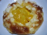 商品説明:マンゴークリームとマンゴーのダイスをのせて、サクサクのクランブル(そぼろ)と一緒に焼き上げました。