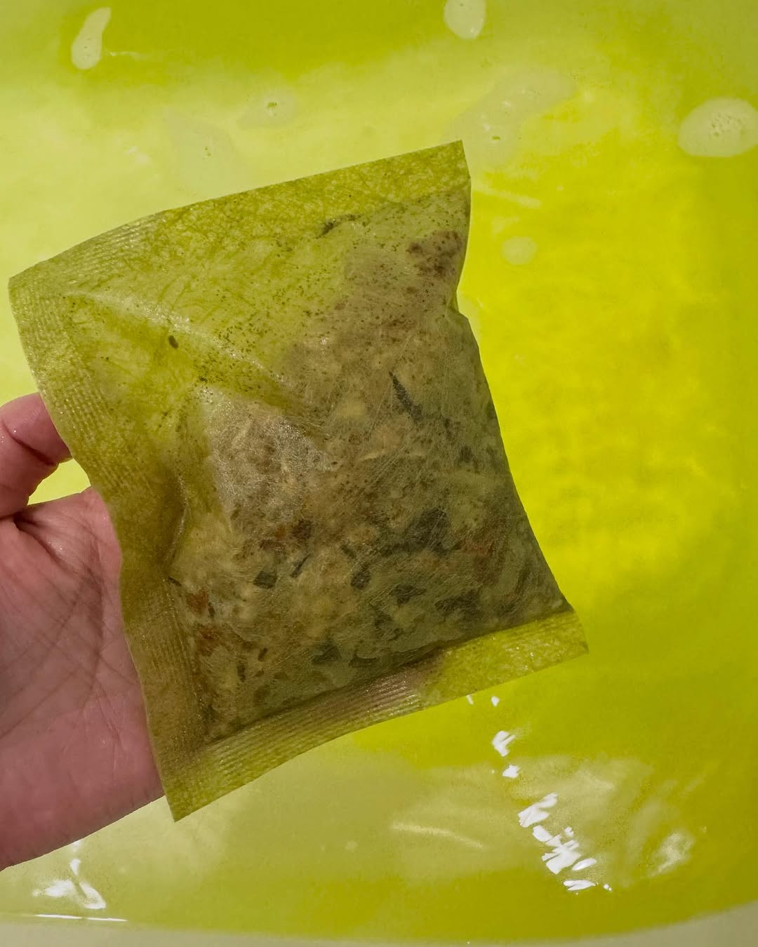 養生薬湯は、生薬をザクザクと刻んでパックしてあり、お風呂にポンと入れるだけで