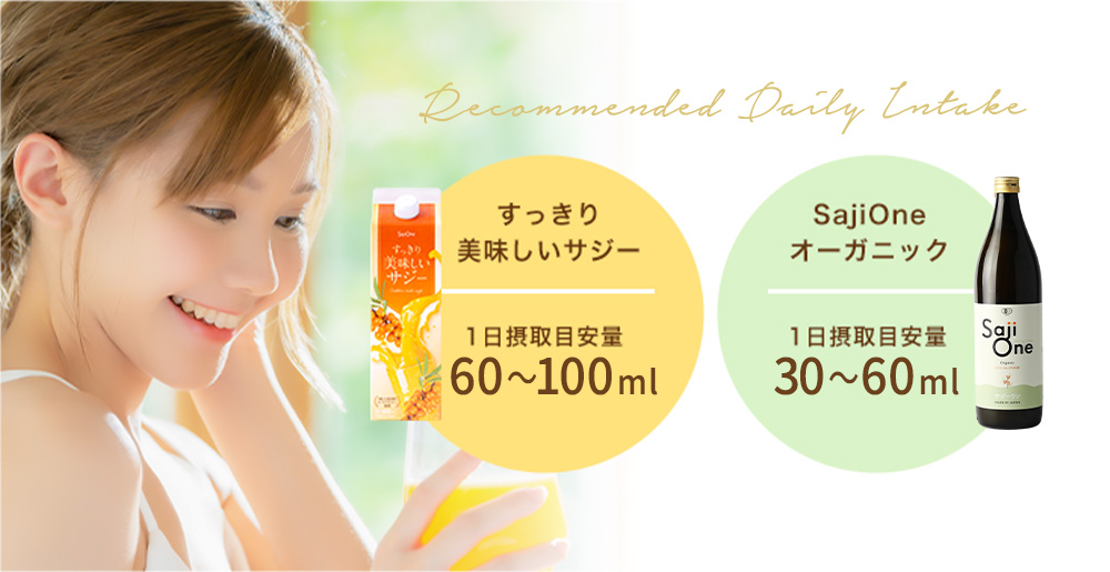 《すっきり美味しいサジー》約60mlで、「SajiOneオーガニック」約30mlと