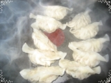 夜は、三興物産様の御厚意に甘え、保存料添加物不使用とのこだわりの手造り焼餃子などに 熱したホットプレートに、餃子を並べて、熱湯を廻し入れ、蓋をした後、23分程、ひたすら、蒸し焼きに 仕上げに、東京巣鴨、奈田利亭様の御厚意に甘え、にんにくアホエンオイルを、回し掛け、無事、完成 三興物産… 2013/02/10