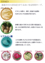 鮭由来の保湿成分「プロテオグリカン」でさらにうるおい力がアップ。天然オリゴ糖「ラフィノース」は肌の水分キープ力を底上げし、