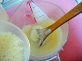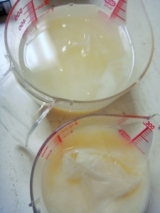 はじめに計量カップに水を入れます 次に石鹸をお茶パックに入れて1日1回まぜながら5日放置 乳化生石鹸1 5日経ちました!こんな感じで、石鹸がかなり溶けました ちょっとだけ、泡ポンプに石鹸液を入れてプッシュすると、 ちゃんと泡が出てきました! でも、説明書の通り、かなり水っぽい! 乳化生… 2014/10/01