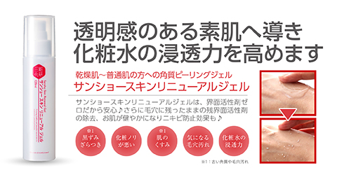 お肌の古い角質を、お肌を傷つけることなく取り除く角質ピーリングジェルをはじめ、特許取得の海藻ゲルカプセルなど、お肌のことを真面目に考えて開発したスキンケア商品をご提案しています。