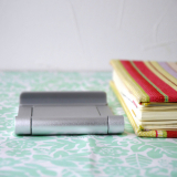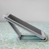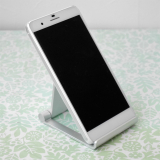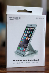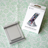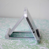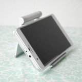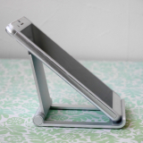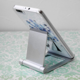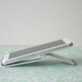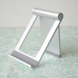 iPhoneやスマートフォン、iPadやタブレット用のアルミスタンド。折りたたみ可能な薄型、軽量で持ち運びに便利な携帯スタンド。角度を無段階で調整できるマルチアングル対応。シルバー。【WEB限定商品】