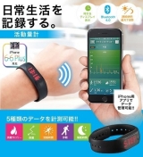歩数や距離、消費カロリーや睡眠時間などが測定できる、リストバンド型活動量計。専用アプリで活動結果をグラフ化でき、一目で確認できる。IPX7の防水規格を取得。