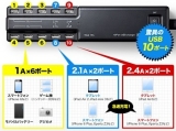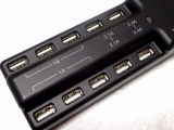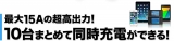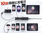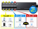 iPhone 6、iPad Air 2など各種スマホやタブレットなどのUSB充電機器を最大10台同時充電できるUSB充電器。タブレットを4台まで同時充電可能。最大15Aの高出力。