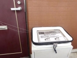 留守中に荷物の受け取りができる宅配ボックス。簡易固定タイプで、宅配業者様向けの案内POP付。鍵・ワイヤー付属。不使用時はコンパクトに折りたたみ可能。耐久性、防水性が高いEVA素材。