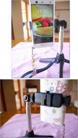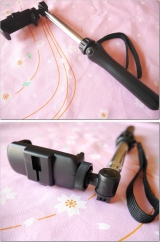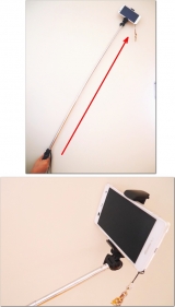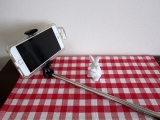自撮り可能なセルカ棒に、自立可能な簡易三脚機能を搭載。スマホホルダー付きで、iPhone 6やiPhone 6 Plus、XPERIA Zシリーズを設置可能。