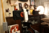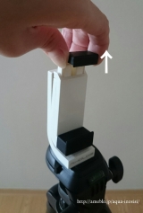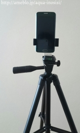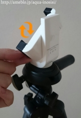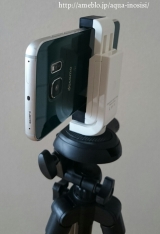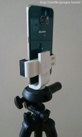 Phone 7/SEやスマートフォンを挟んで、三脚に取り付けができるホルダー。高さを調節可能で様々な機種に対応可能。90°回転可能な三脚用アタッチメント。