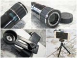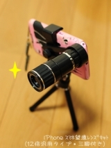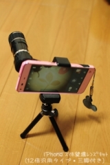 iPhone 6やスマホのカメラを12倍の望遠カメラにできる、カメラレンズキット。光学12倍で、画質を落とさずに撮影可能!各種スマホに取り付けできる汎用タイプで、三脚付きです。