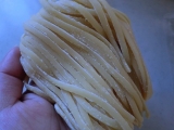 我が家でいつも利用しているパスタは乾麺ゆで時間とにらめっこで調理していますでも良く考えてみたらうどんや蕎麦は生の袋入りが売ってあるのにパスタの生はあまり見かけないそこで登場するのがこちら!!サンヨーフーズ株式会社さんからの『生パスタ、リングイネ』大きい文字文字色60日間の常温保存が可能!(もちろん… 2012/11/13