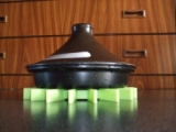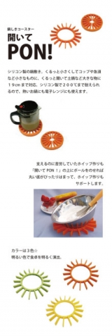 本体を くるんっ! と長い突起を内側から外側にひっくり返すように回すと直径19cmの大きな鍋敷きに。