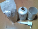 サキナコンディショニングシャンプー使いました これね、ボトルがかわってるんですよ 詰め替え用ボトルとシャンプーがあったんですけど、詰め替え用の袋ごとボトルにセットするねん 液体を詰替えることはしないんです、洗う手間省けてエコで時短で便利 中身はこんな感じでした 透明のゆるいジェル… 2011/12/31