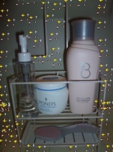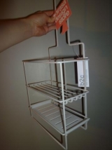 シャワーフックに掛けて使用できる収納ラック。ソープディスペンサー、シャンプーボトル、石鹸などお気に入りのバス用品の収納にオススメ。