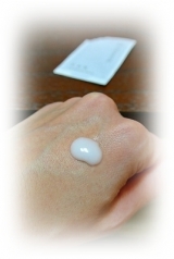 ローションのしっとり感があるうちに、適量を顔全体から首までなじませてください。