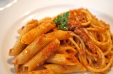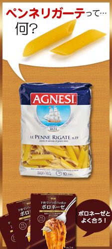 ペンネはイタリア語で「ペン先」の意味、リガーテは「すじ」の意味です。縦に入った「すじ」にソースがよくからみますよ。