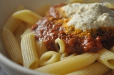 予約でいっぱいの【ボロネーゼソース】は銀座「ラベットラ」落合シェフと共同開発したパスタソースシリーズの定番商品です。ロングパスタにかけるのが一般ですが、是非ペンネリガーテでもお試しください。