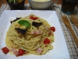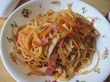 イタリアの老舗高級パスタ『アネージ』の【】を使ったメニュー募集! ←参加中パスタ大好きなので、よくわが家で作ります♪高級パスタ、美味しそうですね♪イタリアの老舗高級パスタ『アネージ』の【リングイーネ】を使って、私は、ベーコン、しめじなどを使ってカルボナ 2011/11/06