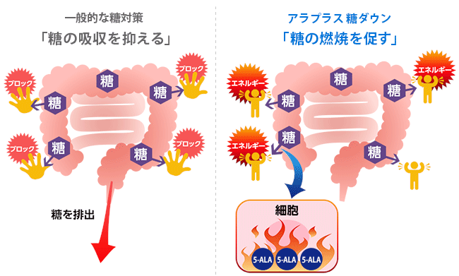 アラプラス 糖ダウンは独自成分の5-ALA配合により、