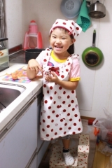 以前ご紹介したシュクココロさんのキッズラブリーエプロン→★ なんと!HPにキッズモデルとしてお写真採用していただきました♪ http//wwwapronsyukucocorocom/SHOP/krA2html かなり気に入って、毎日のようにこれ着てお手伝いしてくれています!… 2012/09/25