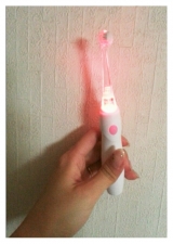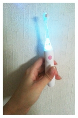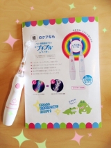 BABY HEALTH CARE「こども用音波電動歯ブラシ 〝プチブル”レインボー」をモニターさせていただきました〓こちらは、楽しくしっかり歯みがきができて乳歯の虫歯予防に最適な歯ブラシボタンを1回押すと、7色に光ります娘も興味津々で、歯みがきタイムが待ち遠しいようですブラシはとても柔らか毛… 2015/09/10