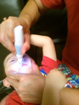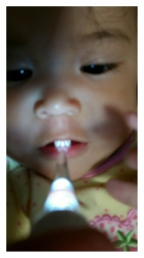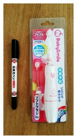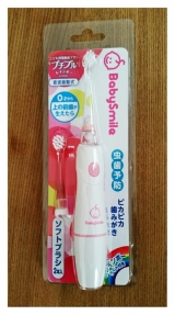 お届けものですBABY HEALTH CAREBaby Smileベビー用電動歯ブラシプチブル レインボー¥1,9800歳の赤ちゃんから使える電動歯ブラシですレインボーライトと白色LEDライトで楽しく歯磨きが出来ますので、歯磨き嫌いな赤ちゃんにもオススメですまだ4本しか生えてませんがしっかり虫歯予防… 2015/09/10