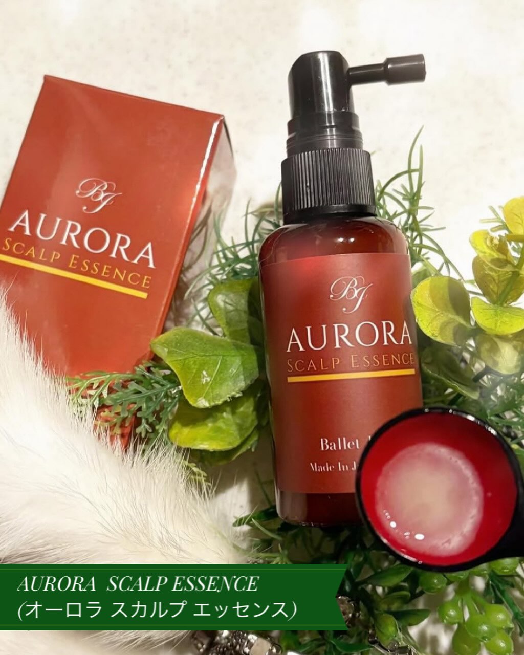 オーロラスカルプ エッセンス〈頭皮美容液〉がついに登場!【毛髪診断士監修】 ミノキシジル誘導体、キャピシル、ヒト幹細胞エキス、フルボ酸、さらに15種の天然厳選原料エキスを贅沢に使用。 全ての年齢、髪質、頭皮環境に。