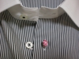 第2ボタンに装着する事でルーズになりすぎず粋なスタイルを造り出せます。