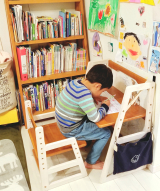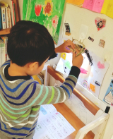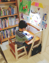 リビングにある子供用のデスクでお勉強をするのがマイブームな息子たち… でもちょっと手元が暗いのが気になって机が狭いから電気スタンド→邪魔?壁に取り付ける照明→いつまで使うか分から… 2019/04/16
