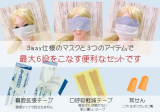 マスク・アイマスク・フェイスマスクの3通りの使い方ができる「3WAYマスク」と「鼻腔拡張テープ」「口呼吸軽減テープ」「耳せん」を一つにまとめた便利グッズです!旅行や出張などの移動中の仮眠時、大部屋での宿泊時など周囲への配慮とご自身の安眠の為に!万が一の避難所生活に備えて防災・持出しリュックに入れておくのもおススメです!