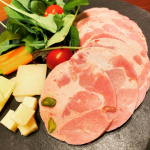 ビールを好む人に欠かせないソーセージです。モモハムと、ピスタチオをちりばめました。