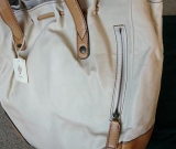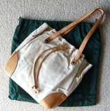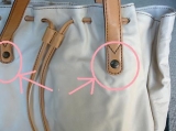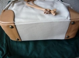 アイボリー色の本体に、ベージュ色の革が2重に付けられていて、丈夫だし、それがアクセントにもなっていますよね。