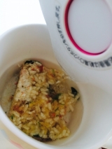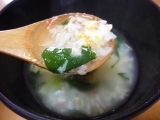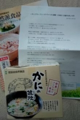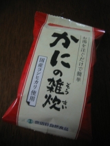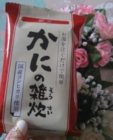 グルコサミンのCMでおなじみの世田谷食品さん サプリメント系のイメージしか実はなかったのですが、お味噌汁や雑炊なんかもあるとのこと 今回はフリーズドライのかに雑炊をお試ししました フリーズドライなのですが、お湯を入れたらすぐにおいしそうな雑炊のできあがり 写真はちょっとお湯が多かったかな… 2015/04/04