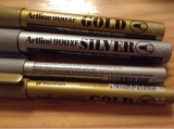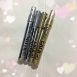 シヤチハタ株式会社様のペイントマーカー使ってみました♪ ゴールド&シルバーカラーです {C7F0F0F318334871ABBE7A680825C10E01} 太字と細字 {6ED9CE0B146340C481A0B7DE557F468201} すぐに紙にな… 2015/03/18