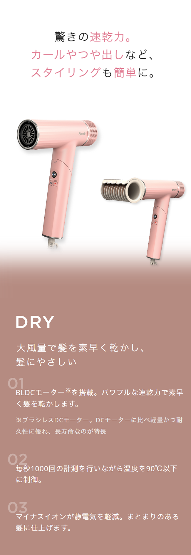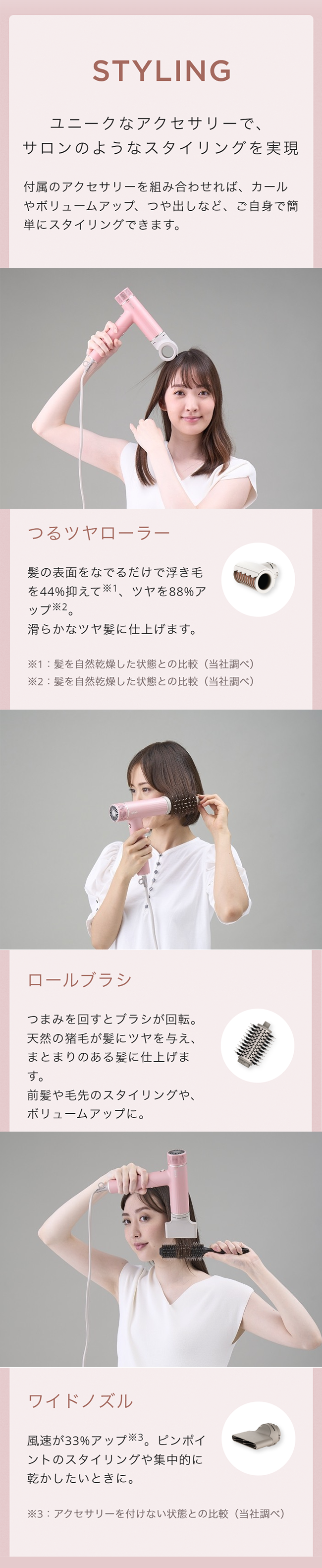 カールやつや出しなど、スタイリングも簡単に。