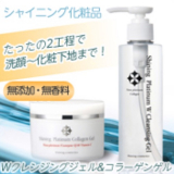シャイニング化粧品はシャイニングプラチナWクレンジングジェルと、シャイニングプラチナコラーゲンゲルのたったの2工程で洗顔~化粧下地まで完結!! シンプルケアで、お肌に負担をかけずに、お肌いきいき素肌美人に・・・