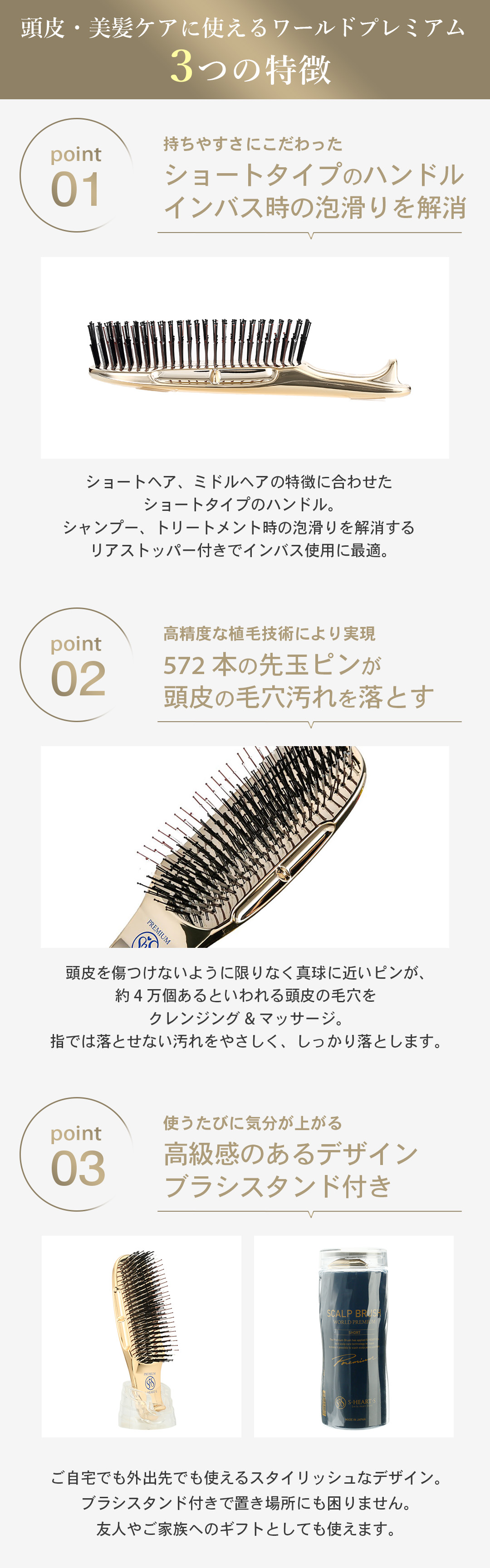 シャンプーでもスタイリングでもお使いいただけるスカルプブラシ