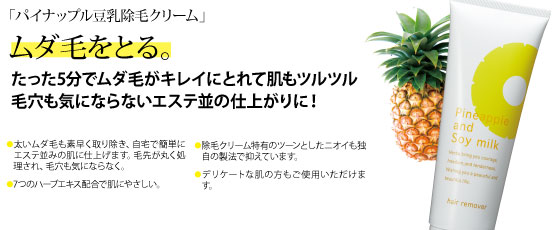 「パイナップル豆乳除毛クリーム」「パイナップル豆乳ローション」で自信のある肌を手に入れましょう♪