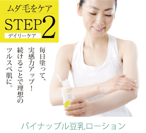 足・腕・ワキに塗るだけ簡単!高純度の2種類のイソフラボンとパイナップル、ザクロエキス、パパイン酵素の組み合わせで、ムダ毛にアプローチ!さらにマンダリンオレンジ果皮エキス配合で透明感あふれるツルスベ肌へ。