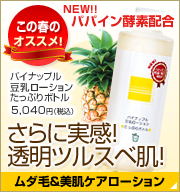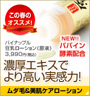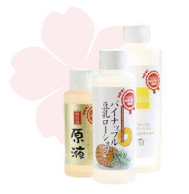 「もっと実感できるものを!」「気になるところを重点的にお手入れしたい」という、皆様のお声から生まれた、パイナップル豆乳ローション《原液》。 大豆エキスのイソフラボンの濃さにこだわった逸品です。