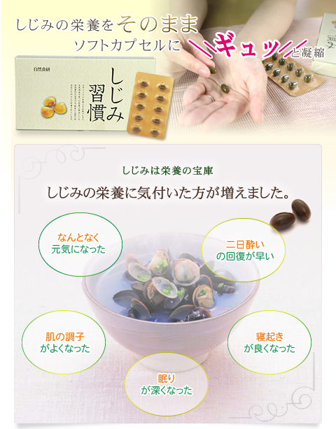 自然素材を原料に健康食品をグループ会社で製造、台湾の黄金しじみのエキスをカプセルに詰めた「しじみ習慣」販売しています。