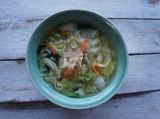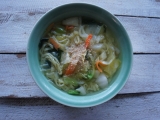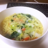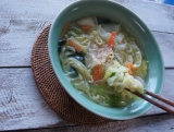 国内産にこだわった5種の具材に国産小麦粉使用の平打ち麺と鶏ガラと香味野菜の旨みがたっぷりの特製スープが付いた野菜タンメンです。