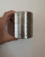 二重蓋で光を遮断して鮮度を保つ、密着性も良く鮮度長持ち。蓋はかぶせるだけなので開閉もらくです。ステンレス槌目模様の美しい風合い。新潟県燕市の職人が作る、精度ある茶筒。