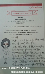 シンリーボーテさんのディープモイストセラムローションをお試しさせていただきましたモニプラさんで募集されてたんですけれども当選連絡がコチラです手書きのメッセージが…!ブログの感想頂いたの初めてで嬉しかったです届いた商品はコチラの2点ディープモイストセラムローション 120ml6,000円(税抜)… 2015/01/05