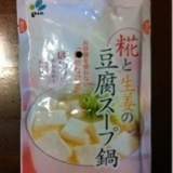 新進の糀と生姜の豆腐スープ鍋を 作ってみました 人気行の米糀を使用し、 砂糖を使用せず糀が作り出した 自然な甘さが特徴の鍋スープ 体を温める生姜の風味も加えられ、 豆腐とお好みの具材をいれて簡単に作れます おすすめの絹ごし豆腐に、 鶏肉や白菜などの野菜を加えて煮込みました… 2013/02/25