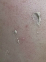 スキンケア使用後、適当を取り、顔全体に塗り伸ばします。