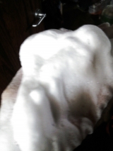 泡立てネットの余りを折り、軽く泡立てていきます。