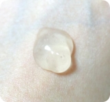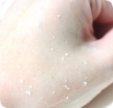 ②ゲルが古い角質を巻き込んでポロポロと出てきたら(20~30秒程度)水またはぬるま湯でよく洗い流してください。