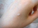 ①人差し指もしくは中指に、片目につき米粒大程度(約0.2g)のアイクリームを取り出します。